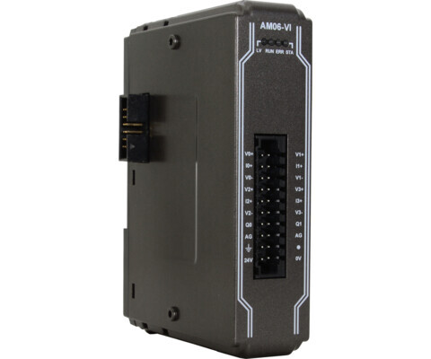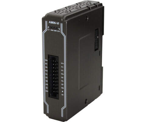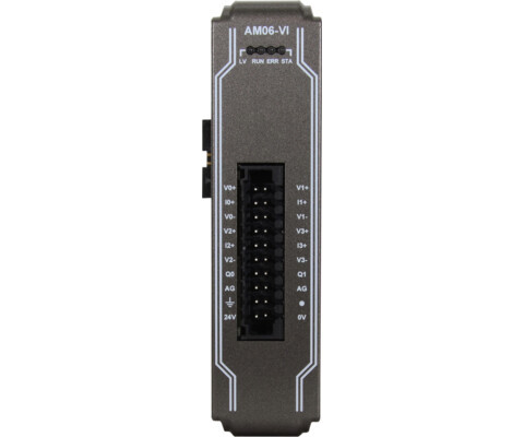 Модуль iR-AM06-VI серії iR від Weintek призначений для збору та формування аналогових сигналів у промислових системах автоматизації. Він поєднує 4️⃣ аналогові входи та 2️⃣ аналогові виходи в одному корпусі, що робить його універсальним рішенням для задач вимірювання й керування. Застосовується для інтеграції з PLC, HMI та SCADA-системами через комунікаційні модулі (iR-ETN, iR-COP, iR-ECAT) або може працювати як модуль аналогових I/O у складі контролера cMT-CTRL01 під управлінням CODESYS.