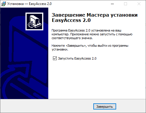 Коли процес установки закінчиться , відкриється це вікно . У ньому можна виставити прапор " Запустити EasyAccess 2.0", і після натискання кнопки " Завершити " відкриється програмне забезпечення EasyAccess 2.0