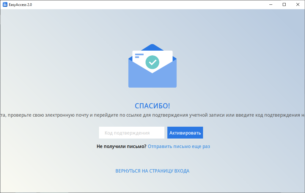 Вітаємо , Ви успішно встановили ПЗ EasyAccess 2.0 на Ваш комп'ютер