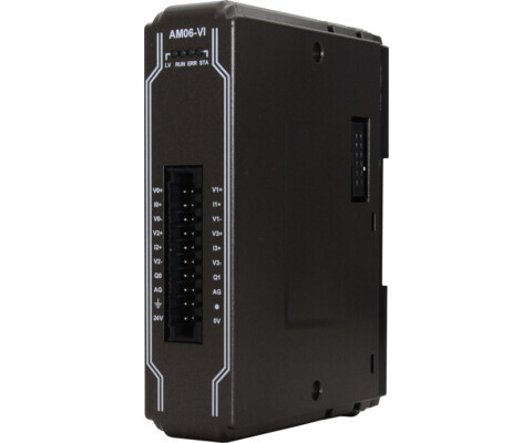 Модуль iR-AM06-VI серії iR від Weintek призначений для збору та формування аналогових сигналів у промислових системах автоматизації. Він поєднує 4️⃣ аналогові входи та 2️⃣ аналогові виходи в одному корпусі, що робить його універсальним рішенням для задач вимірювання й керування. Застосовується для інтеграції з PLC, HMI та SCADA-системами через комунікаційні модулі (iR-ETN, iR-COP, iR-ECAT) або може працювати як модуль аналогових I/O у складі контролера cMT-CTRL01 під управлінням CODESYS.