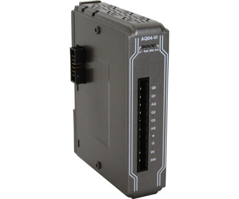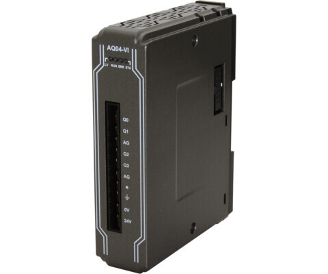 Модуль iR-AQ04-VI серії iR від Weintek призначений для формування аналогових сигналів напруги та струму у промислових системах автоматизації. Він використовується для керування виконавчими механізмами — частотними перетворювачами, клапанами, позиціонерами, електроприводами та іншими пристроями, які потребують аналогового керуючого сигналу.
